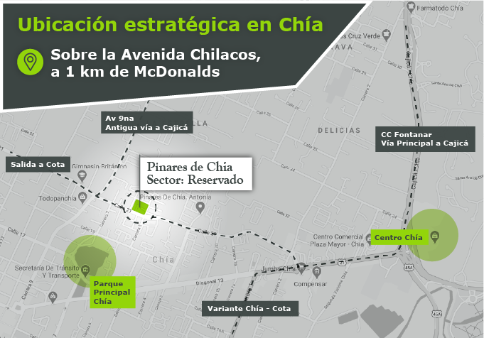 Ubicación estratégica en Chía, en la zona residencial más cotizada de la Av. Chilacos.